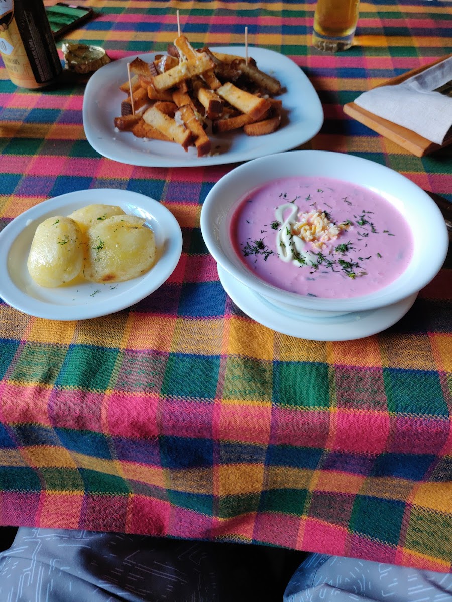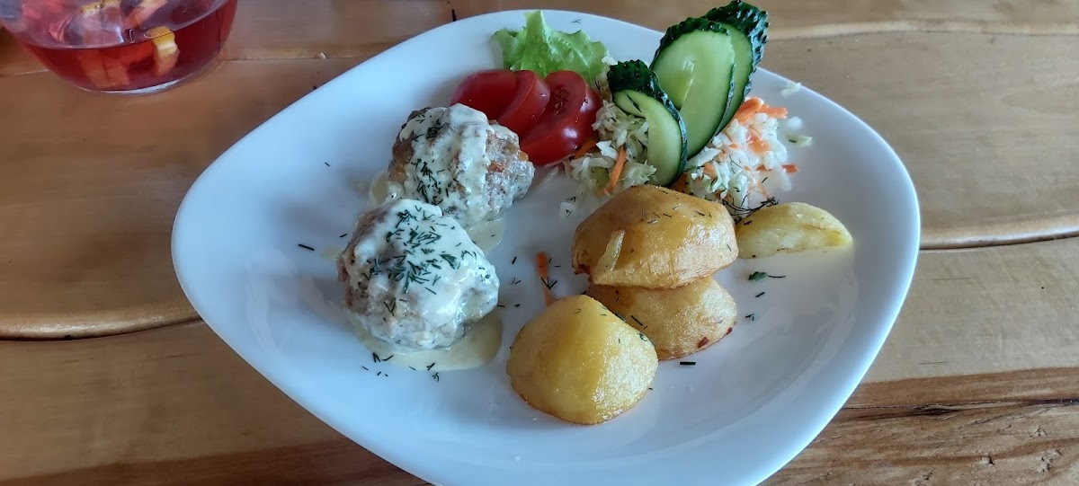 The cafe specializes in homestyle Lithuanian cuisine that highlights the heartiness of local ingredients. A must-try is the exquisite delicious sorrel soup, a tangy and fragrant dish that soothes the palate with every spoonful. For a heartier option, the chicken rolls paired with fluffy potatoes and a crisp salad are a delight, satisfying your hunger with rich flavors and generous portions. And, if you have a sweet tooth, the cake with a scoop of ice cream is the perfect ending to your meal—light, decadent, and utterly irresistible.
